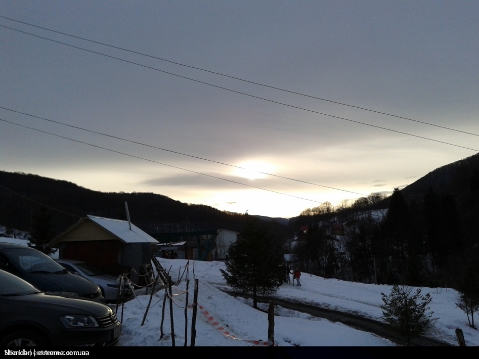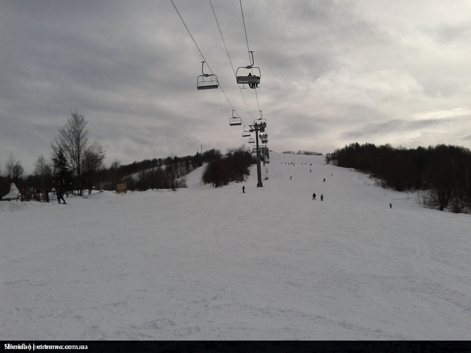І ось ми на місці. Каталка виявилась классною, я задоволений.  Людей було відносно небагато, черги хвилин на 10-12. Схил мягкий, добре укатаний, сніг важкий, спостерігались ділянки де проглядалась земля, але відсутність морозу, зробила їх легко проходимими, леду не було, внизу на викаті, щось подібне на кашу.
