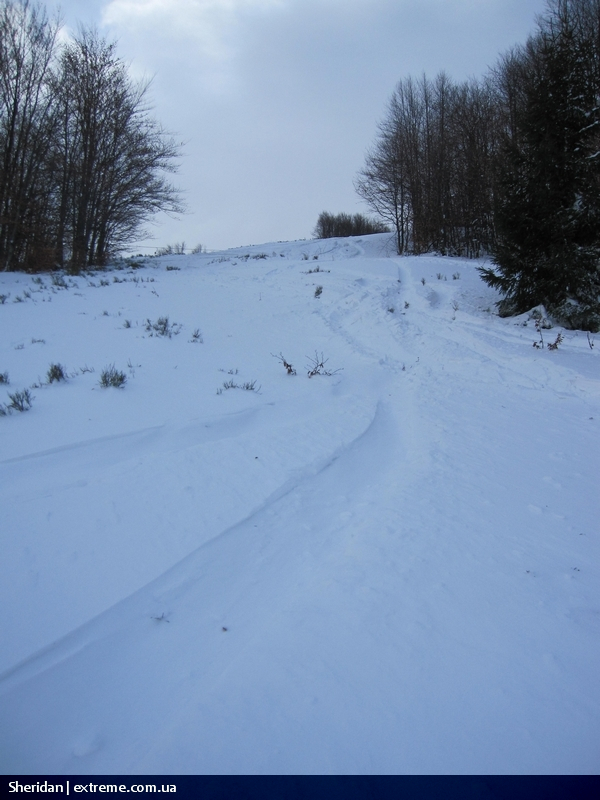 Нижче, біля ялиночок/лісочка веселіше. Не павдер, але можна навіть було зачепити трохи пухлого.
