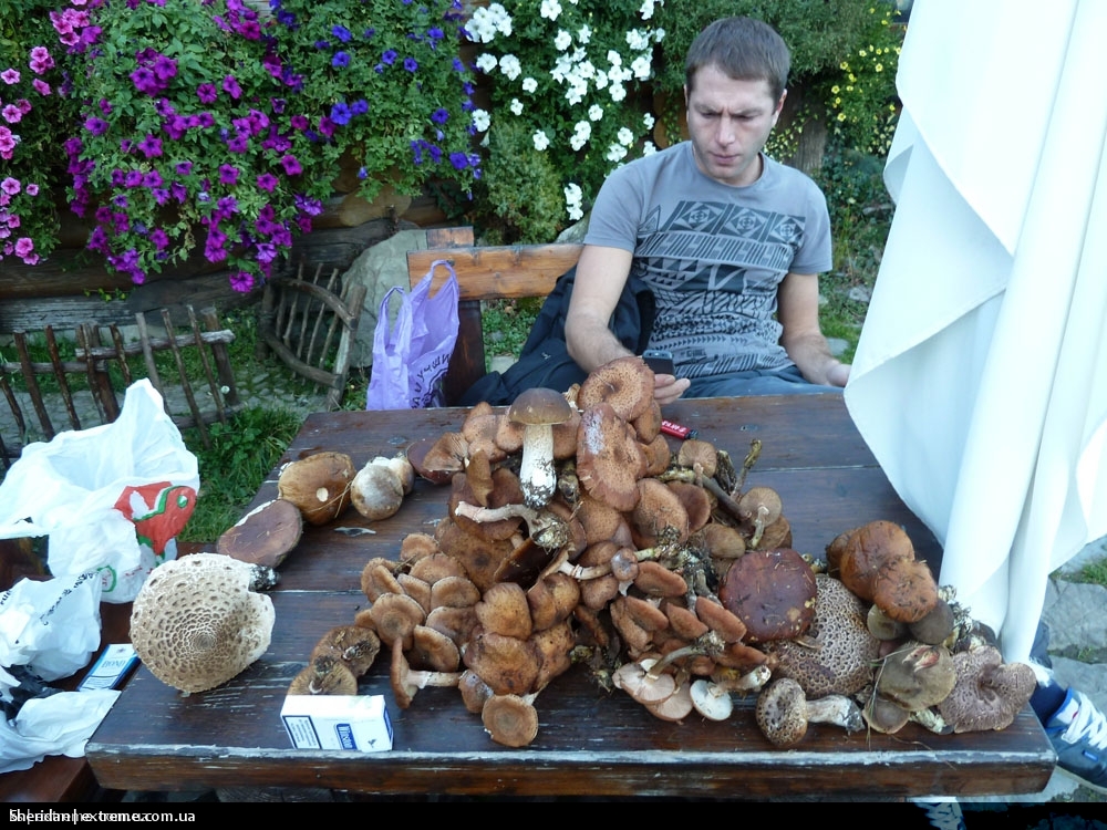 это съедобный гриб, называется Зонтик, когда он молодой- очень похож на Мухомор, только в отличии от Мухомора он чернобелосерый. Растут на открытой местности, обычно недалеко от деревьев или в поле. http://extreme.com.ua/forum/attachme...1&d=1350815328 Когда он постарше становится таким http://extreme.com.ua/forum/attachme...1&d=1350814593 Так сейчас выглядит Шипот http://extreme.com.ua/forum/attachme...1&d=1350814593 Молоко которое дают местные коровки просто обалденное, цена бросовая- 7,50 полтора литра. На фото теленок)))) Мы его берем у Любы, это рядом с мостом через реку, мост который в сторону Одессы http://extreme.com.ua/forum/attachme...2&d=1350814359 А вот на таких девайсах я так и не катался, а очень хочется. http://extreme.com.ua/forum/attachme...1&d=1350815815 Сушилка по центру полностью забитая вчерашними белыми грибами, а слева и права то что собрали в лайте для ужина и грибной икры, кстати грибная икра получилась просто офигенная, и на удивление она очень проста в приготовлении, главное чтобы была мясорубка. http://extreme.com.ua/forum/attachme...1&d=1350815815 Ломали голову чтоже приготовить вечером, рагу с мясом и грибами оказалось самое то! готовится долго но получилось очень вкусно. http://extreme.com.ua/forum/attachme...1&d=1350815815 |